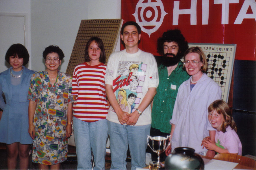 Surprisingly Lazarev lost to Egbert Rittner, Matsutomo lost to Zhang and Miyakawa beat Janssen, so that there were three players on 8 wins, none of them European. Now Zhang was on a lower CUSS tie-break score having lost his games early on, but the other two were tied. They remained tied for the purposes of the Grand Prix points, but it was decided that by having won their mutual game the 59 year old Japanese businessman Matsutomo should be the Hitachi European Open Champion. Alexei Lazarev, the Russian 6-dan, was the highest placed European and hence became the European Champion for the second year running.