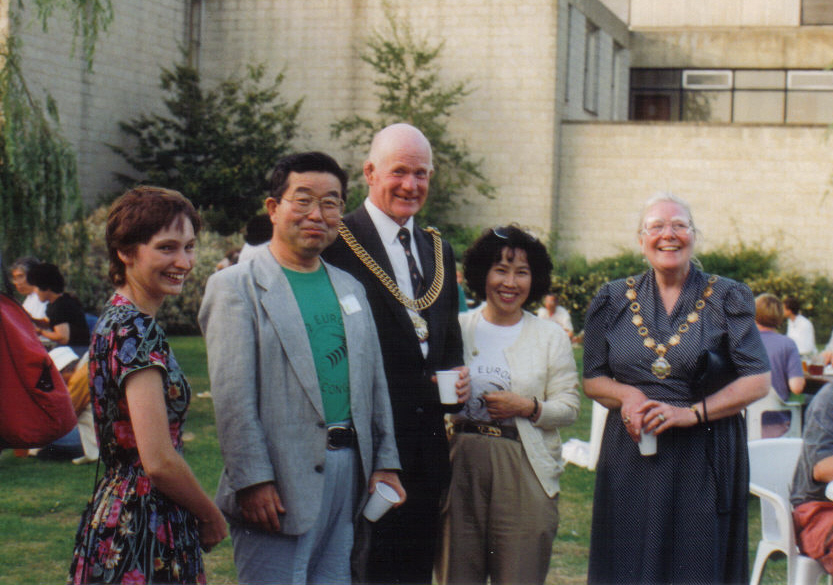 In an eleventh hour deal, sponsorship was obtained from Hitachi. Dr. Shirasuka Motoki and Mr. Nakayama Yasuo from Hitachi Europe both were able to attend the opening ceremony, Dr. Shirasuka bringing his young son along who is a very keen go player. We were pleased to have Dr. Shirasuka along again at the closing ceremony to present the enormous silver trophies to the winners. The British Go Association is very thankful to Hitachi for their help as it enabled all aspects of the congress to be developed to the full without incurring any financial worries. Thanks must go to the Asahi Shimbun newspaper, the International Amateur Pair Go Organising Committee, JAL and other minor sponsors for supporting various aspects of the congress. The opening ceremony was also graced by the presence of Nozaka Yasuo from the Japanese Embassy, and Wang Gui-Lin and Wang Xiao-Ning from the Chinese Embassy, his worship the Lord Mayor of Canterbury and the Lady Mayoress.