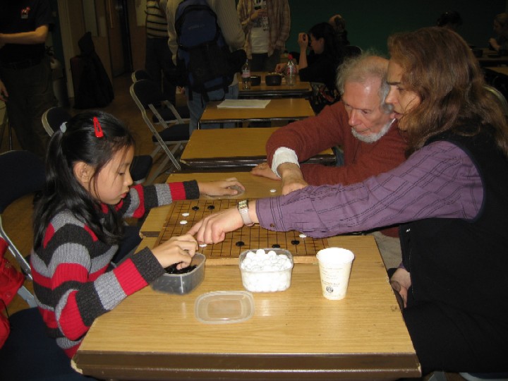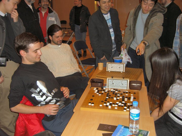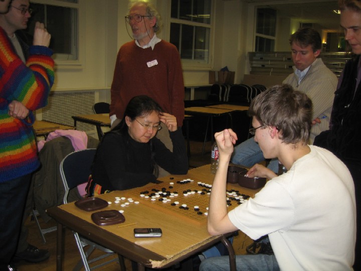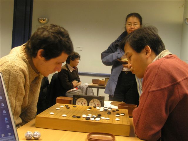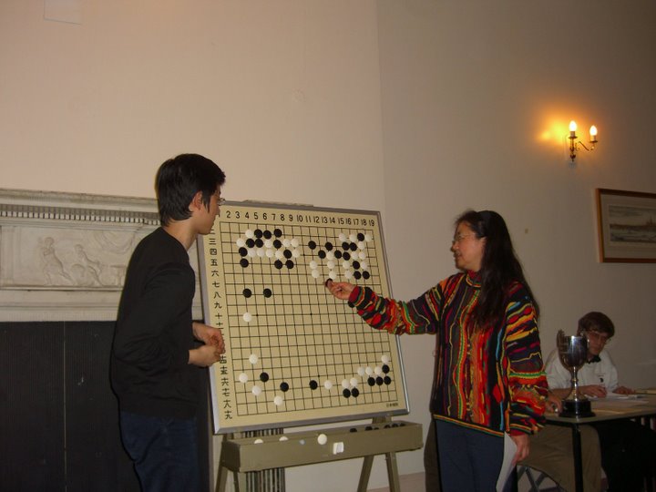 In the beginning, Go is a calm, peaceful, and enlightened game. All the top games are played in the Portland room. Later the going gets tough, and teacher Guo Juan in the Portland room is wondering how to explain ... Twelve pairs competed in the popular Pairgo side event run by Nick Wedd in the Theatre.