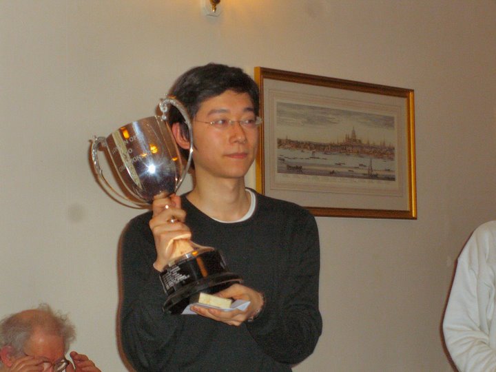 Julio Martinez 4k Spain is hugely pleased to beat Ting Li 6d China in the arduous London Open lightning tournament. Guo Juan lectures us on the winner's final game. There were 100 people present at the closing ceremony in the Gulbenkian. Finally the winner Ouyang Shaoyou gets to hold his cup for a while. He takes a London Open trophy and of course the Pandanet cash prize home with him.