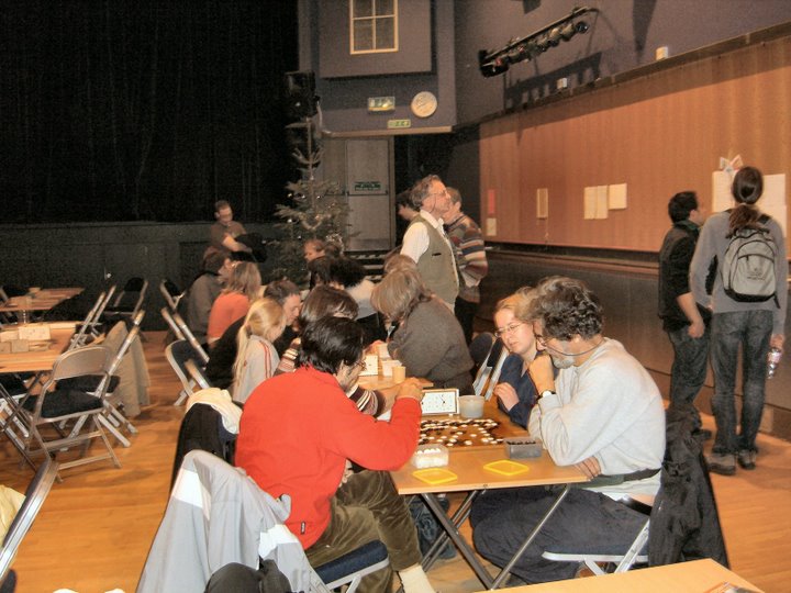 After the closing ceremony we re-arranged the seating for some Rengo in the afternoon. Then over 30 of us walked to a meal at a nearby Indian restaurant, and finally back to ISH for fun games and New Years Eve celebrations!